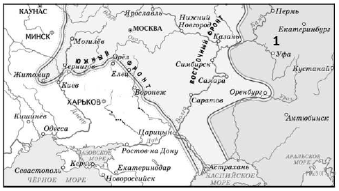 Укажите военачальника белой армии, чьи войска действовали в районе, обозначенном на схеме цифрой 1.